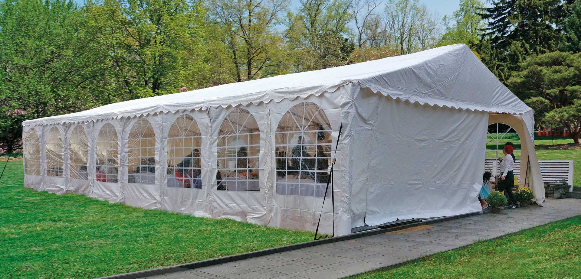 Rakentamiseen tulee varata riittävästi aikaa. Teltan kasaaminen ja purku vievät molemmat tavallisesti noin yhden päivän. Toimitamme halutessanne myös lattiaelementit.